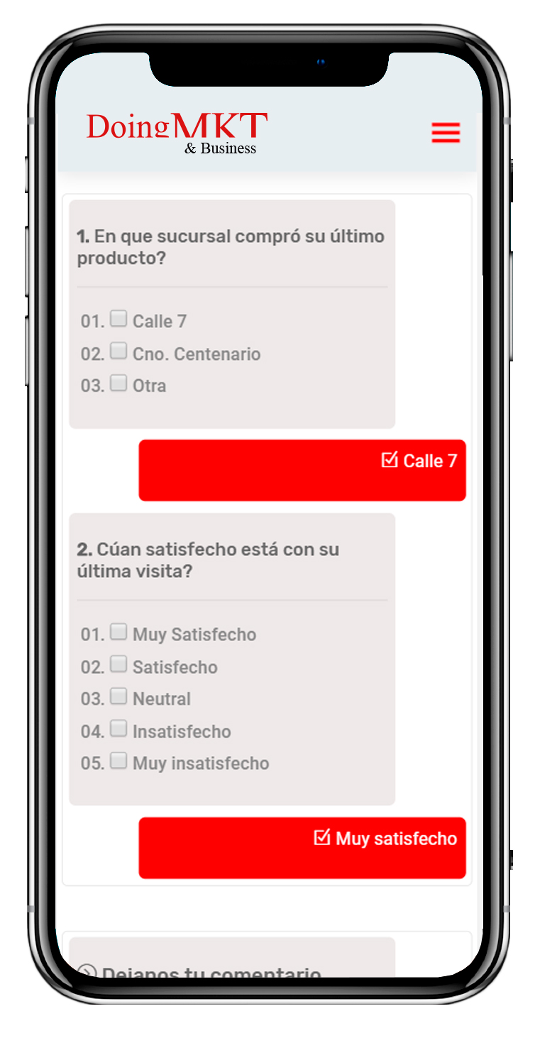 El link de cuerpo del mensaje lleva a nuestro encuestado a un Chat donde va a poder contestar las preguntas en forma automática seleccionando la opción que cree conveniente.